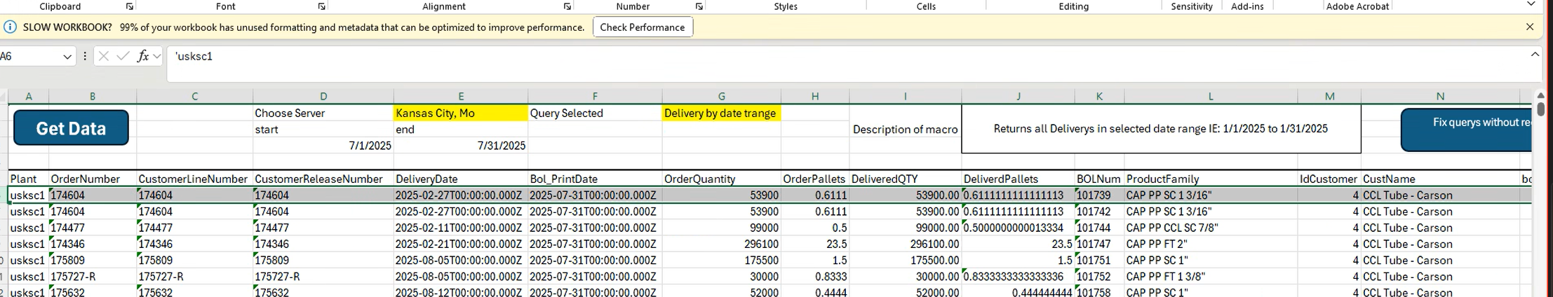 Deliovery by date range pulling incorrect bol #49